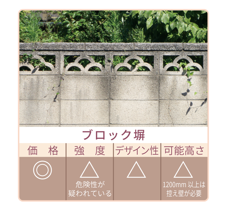 価格は安いが危険性が疑われており高さによって控え壁が必要。
