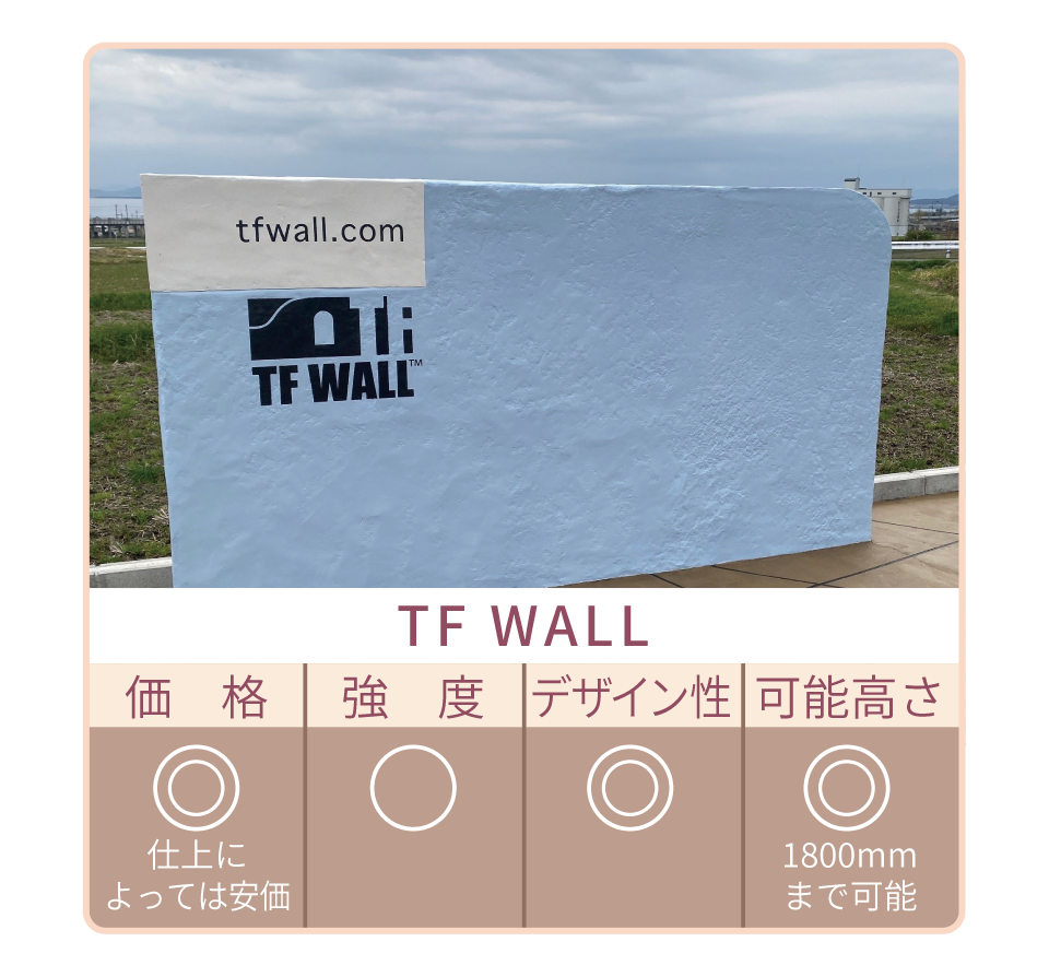 日本において地震や台風の災害によるプロック塀の倒壊は大変問題になっています。その中でも特に危険なプロック塀を撤去するように呼びかける自治団体も出てきているようで、全国でプロック塀に替わる素材を探している工事業者も多数出てきています。このTFWALLはその問題を解決した画期的なEPS工法です。耐久性はもちろん、幅広い意匠仕上げに対応しておりモルタル造形や意匠塗装仕上げなどでよりお洒落な塀を作ることが可能です。